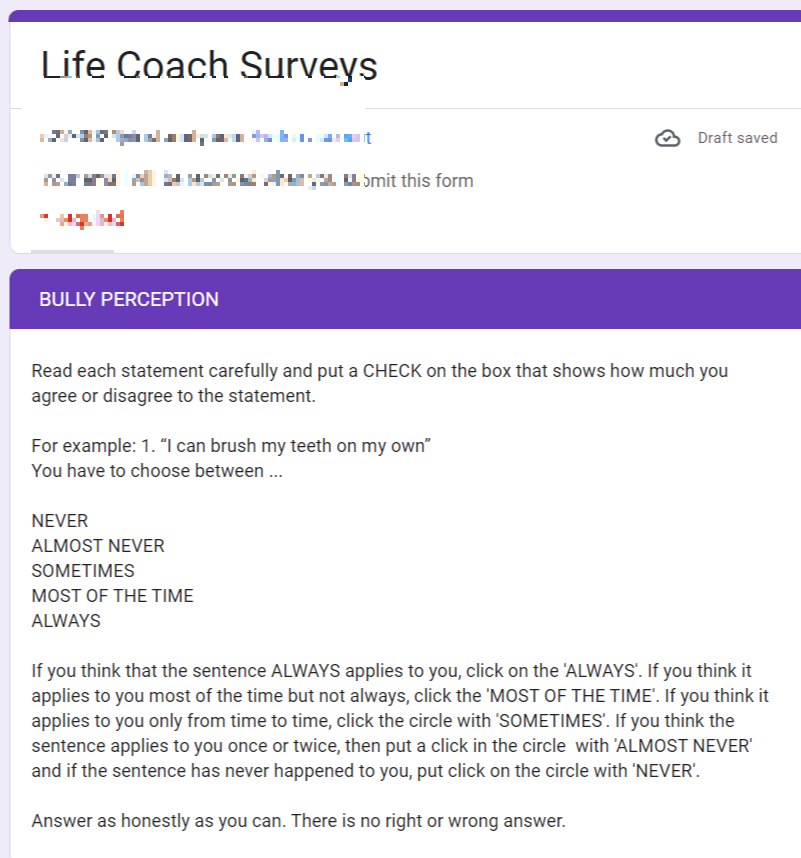 저는 Ridley International School로부터 Life Coach 설문조사에 관한 이메일을 받았습니다.