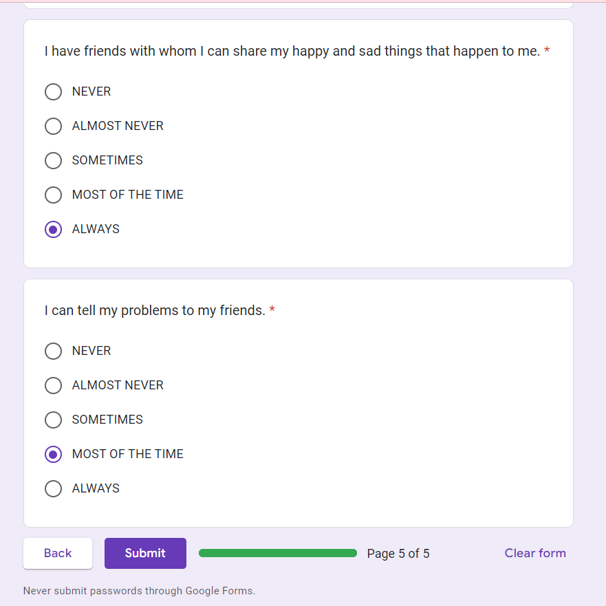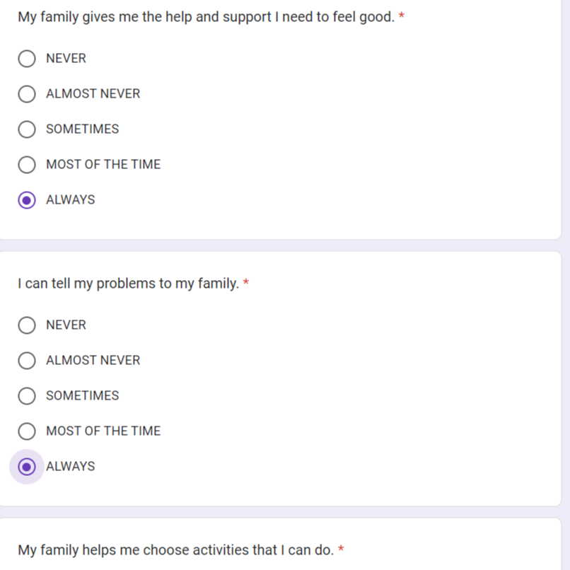 학교생활 전반에 대해 묻고, 일상생활에서 느끼는 감정을 묻고,