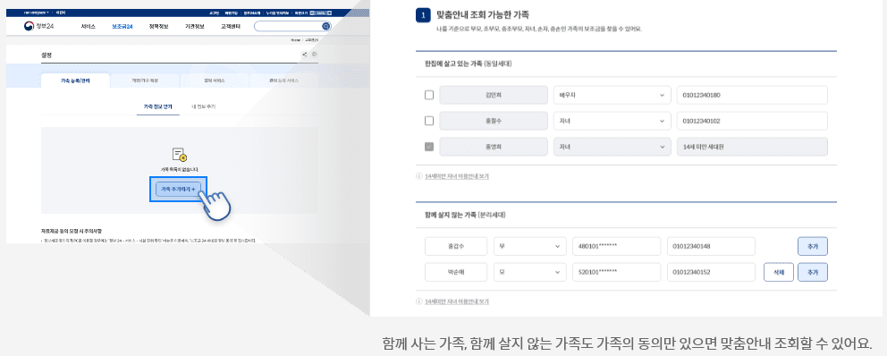정보 제공 동의 요청에 동의한 가족 구성원. 자격정보를 활용한 맞춤형 상담요청 진행.