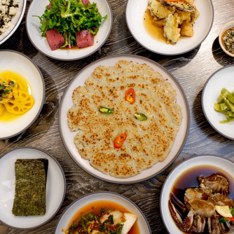 테이블 세팅이에요. 예약을 하고 갔더니 도착하니 반찬들이 이미 세팅되어 있었어요. 다복해정은 고기집임에도 불구하고 반찬이 다양했습니다. 식기 세트는 종이 포장에 깔끔하게 포장되어 있습니다.