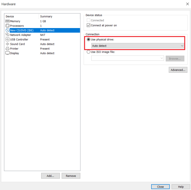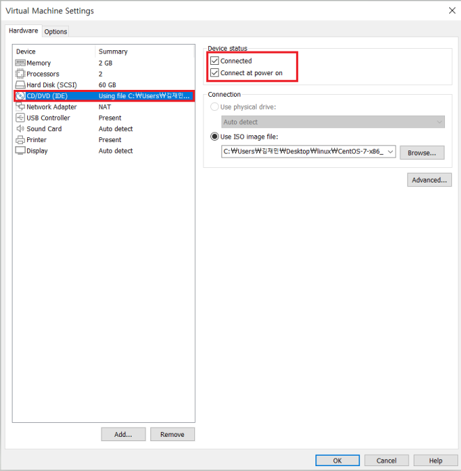 4. VM Settings CD/DVD-ROM의 연결 상태 확인