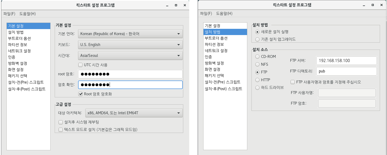 - 운영 체제 설치에 필요한 파일을 VSFTP 경로(ftp://192.168.158.100/pub)에 다운로드합니다.