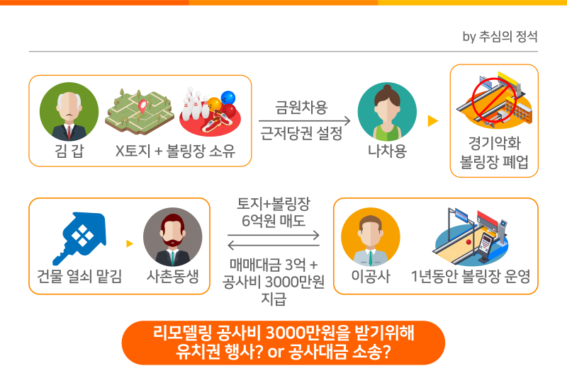 이 경우 미지급 공사비에 대한 유치권을 신청할 수 있습니다. 공사대금이 제대로 지급되지 않았기 때문에 공사가 이루어지는 건물에 대한 소유권을 주장할 수 있습니다. 하지만 이 유치권으로 인한 공사비를 충당하기 위해서는 몇 가지 조건이 필요했고, 잘 준비된 여러 소송도 필요했다.