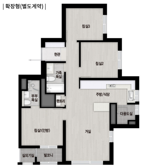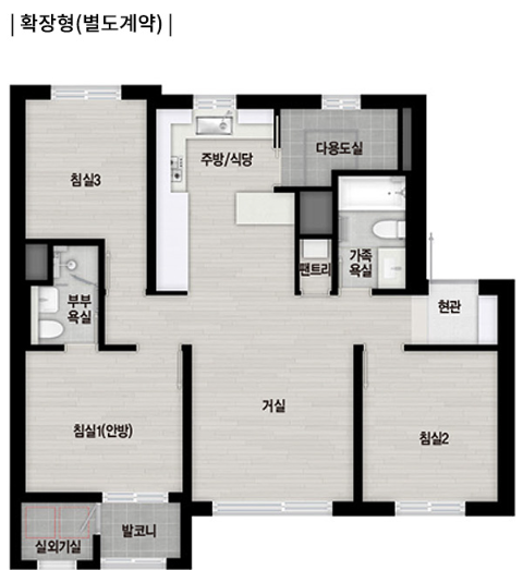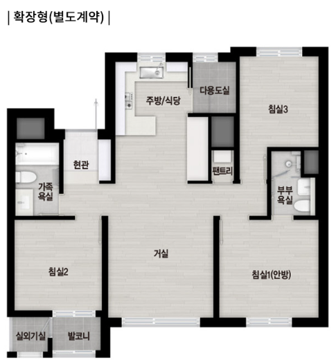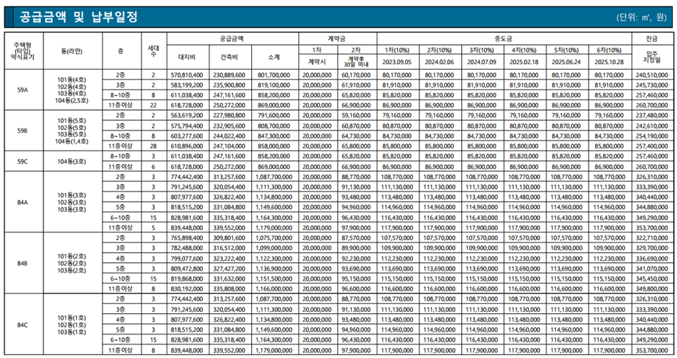| 분할 | 세대 수 | 가격(만원) | 발코니 확장비(10,000원) |